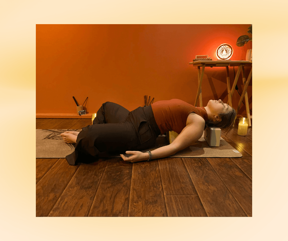 Pratique de yin yoga & yoga restaurateur accessible à tous, avec des postures maintenues plusieurs minutes et soutenues par des accessoires (coussins, blocs, couvertures)